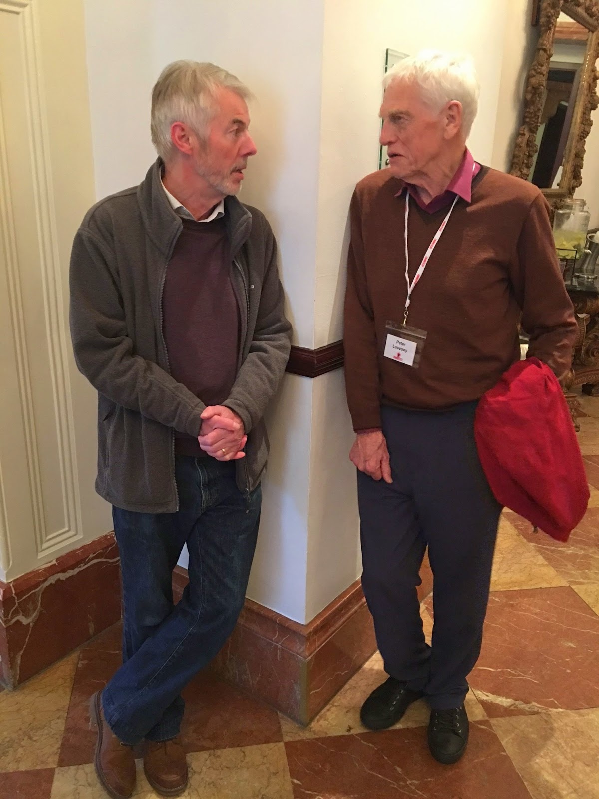 British crime-writing stars Andrew Taylor and Peter Lovesey find a quiet corner to catch up with each other.